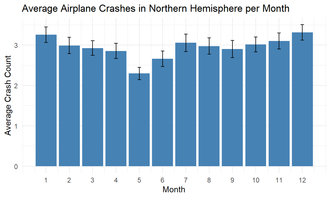 title = "Average Airplane Crashes in Northern Hemisphere per Month",