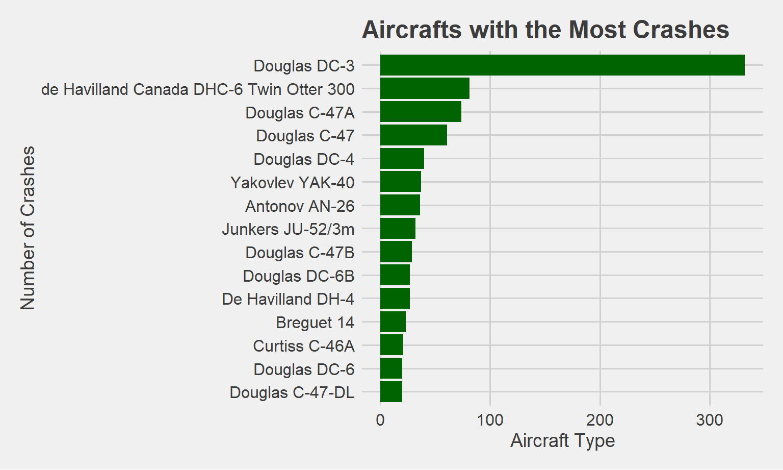 title = "Aircrafts with the Most Crashes",
